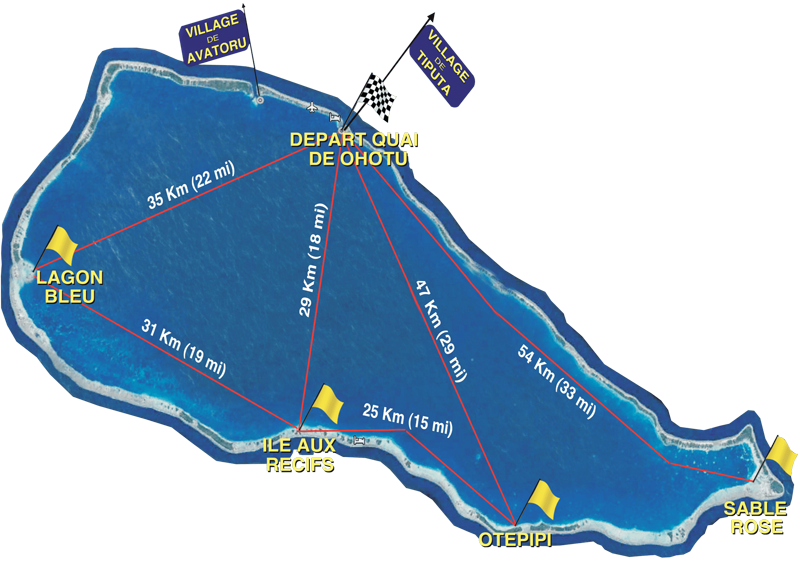 La carte de Rangiroa présentant les différentes excursions que nous réalisons.